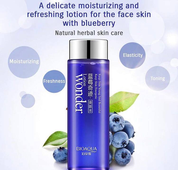 تونر جوانساز بلوبری مرطوب کننده، علاوه بر خاصیت رطوبت رسانی بالا، در سفید کردن پوست و افزایش درخشندگی پوست نقش مهمی ایفا می کند.